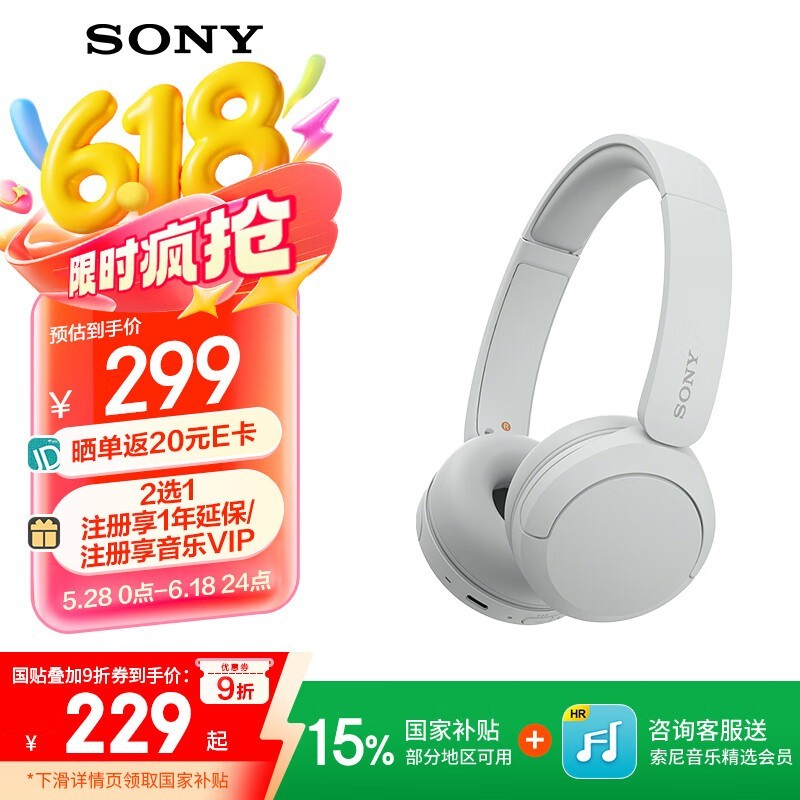 索尼WH-CH520头戴耳机限时特惠!
