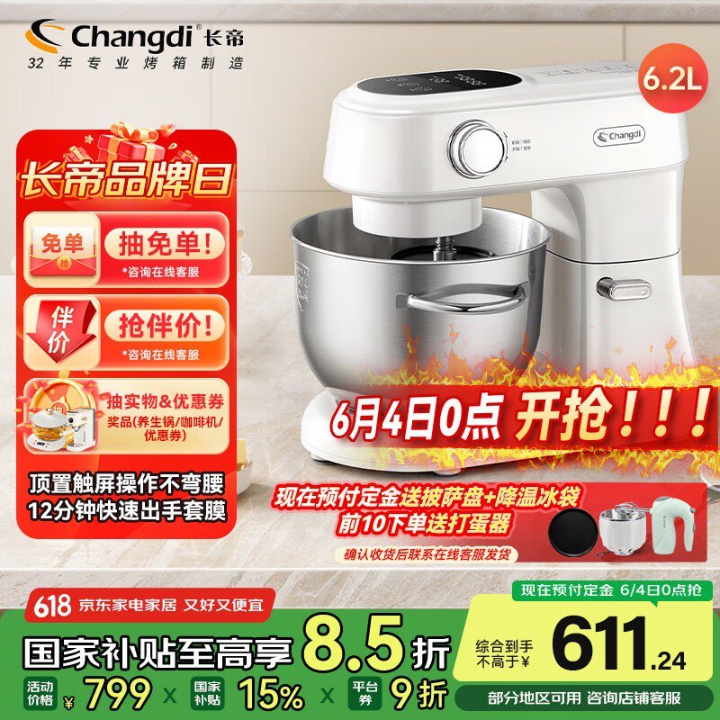 长帝家用多功能和面机促销:6L大容量,触屏操作,一机多用,劲爆价608元