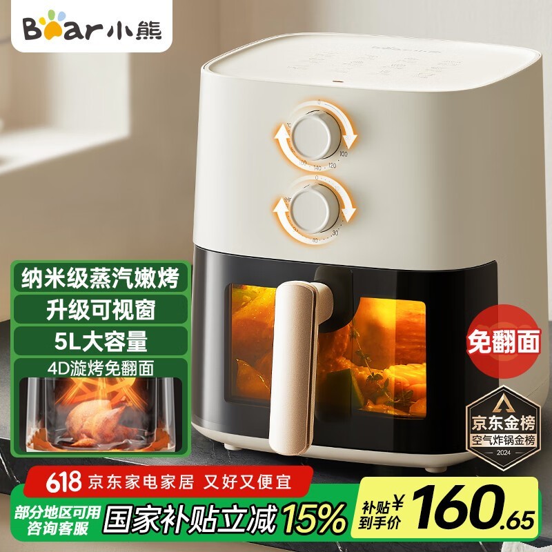 小熊5升可视空气炸锅,京东110元可入手