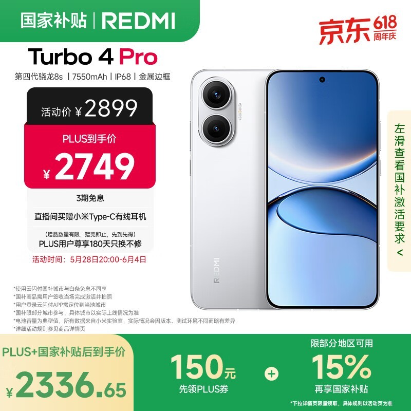 红米Turbo 4 Pro 5G手机16GB+1TB白色超值优惠