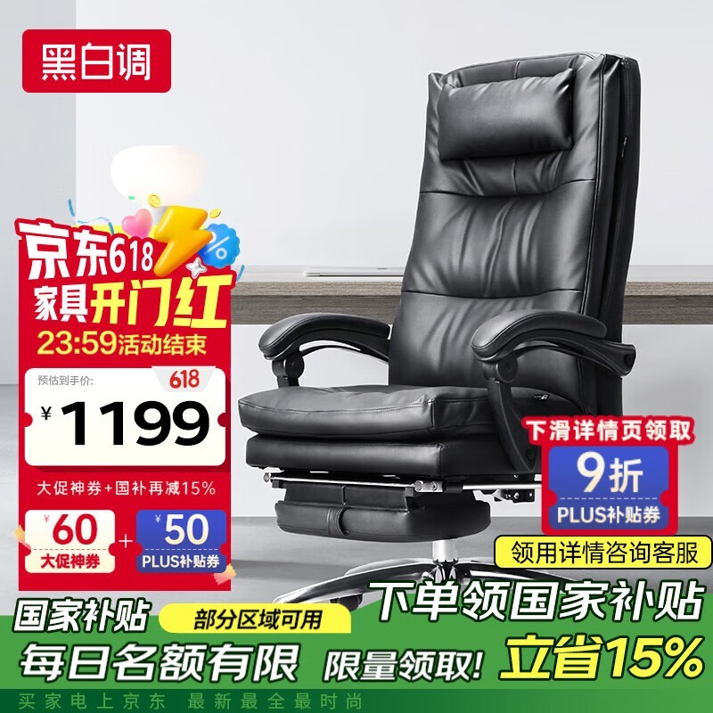 黑白调R3Pro玄黑真皮电脑椅限时特惠900元
