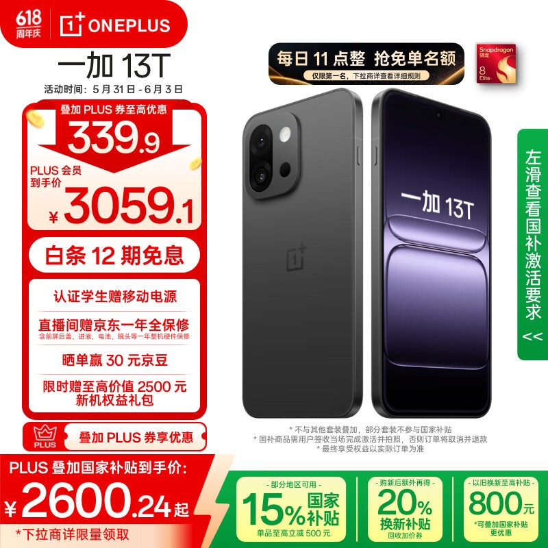 一加OnePlus 13T 12GB+256GB云墨黑版京东超值优惠