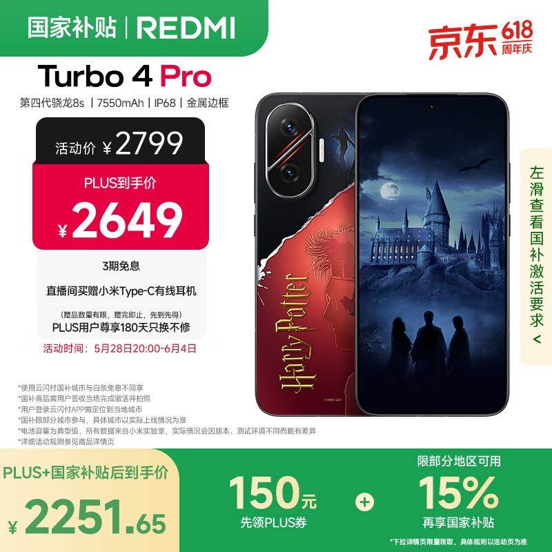 红米Turbo 4 Pro 5G哈利·波特版手机低至2251元