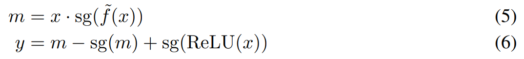 该公式实现了梯度注入,并确保即使对于负激活也能进行梯度传播。具体来说,利用 [34] 中的乘法技巧,替代梯度函数的直接注入如下: