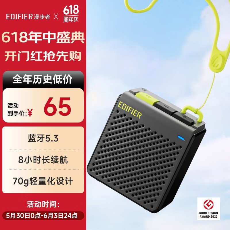 漫步者M0户外蓝牙音箱(陨石灰)促销价49.72元