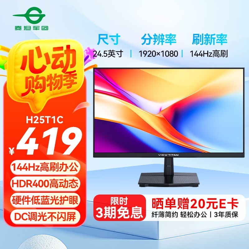 泰坦军团H25T1C显示器京东促销价356元