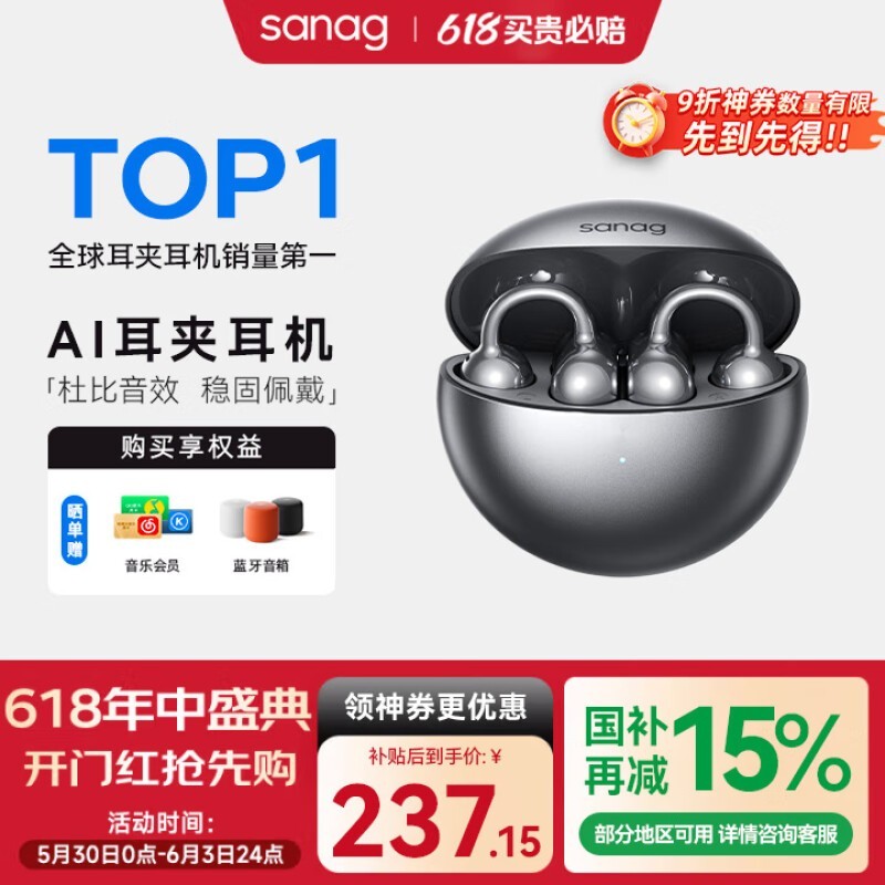 塞那S6S骨传导蓝牙耳机优惠价210元