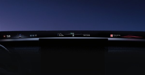 小米YU7取消了小米SU7的翻转仪表盘,首发天际全景显示屏,三块Mini LED屏幕将屏幕信息直接反射到前风挡下黑区,沉浸式交互体验也能吸引到不少注重科技感的年轻用户。