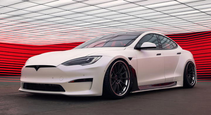 新款 Model S 的侧面和尾部造型并没有发生明显的变化,但是另一组谍照显示 Plaid 版本会使用新的进气口和前唇造型以及后包围。