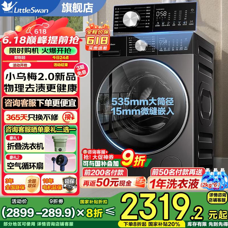 小天鹅TG10SC08PRO滚筒洗衣机限时特惠1577元