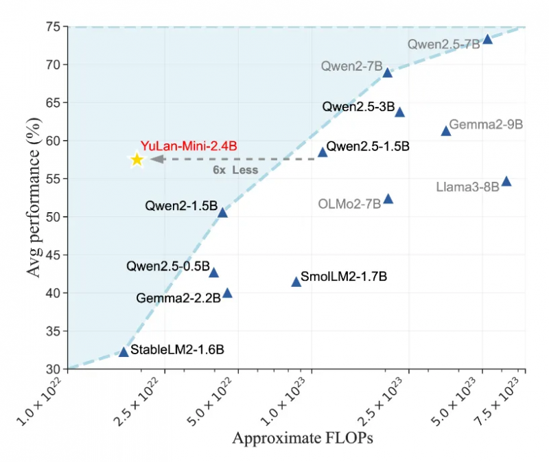 本次被ACL 2025主会场收录的论文《YuLan-Mini: Pushing the Limits of Open Data-efficient Language Model》,针对大型语言模型(LLMs)预训练过程中存在的关键瓶颈与设计难点进行了探索,并预训练出一个完全开源的高性能基座模型YuLan-Mini。该模型作为 2.4B 小参数量模型,仅在 1.08T Tokens 上预训练,展现出优异的训练高效性,实现比肩商用小模型的性能表现,为资源受限场景下的模型部署提供了全新范式。