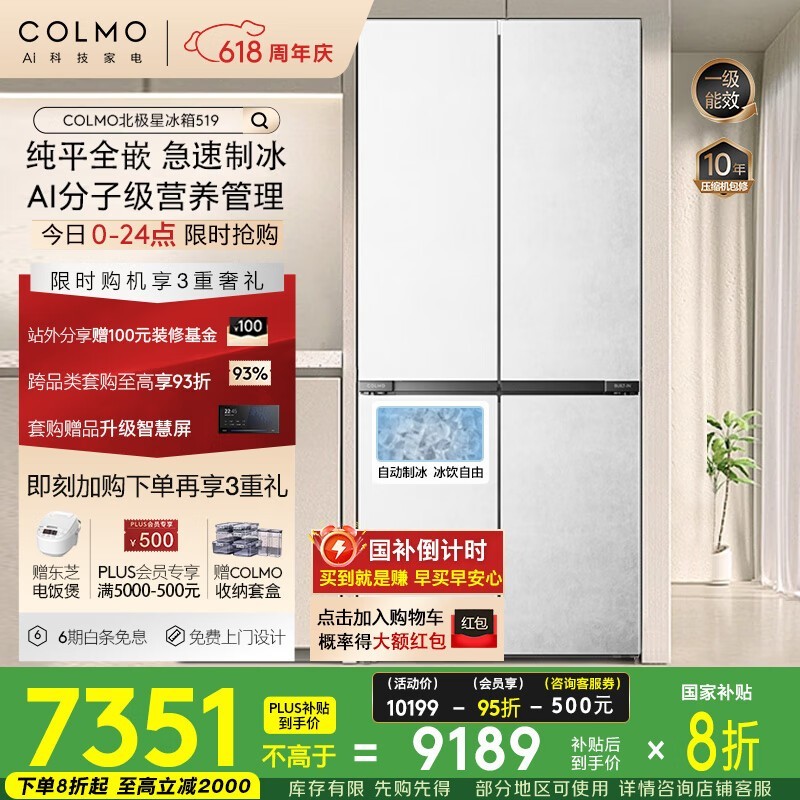 COLMO北极星519L冰箱限时特惠,节能保鲜新体验