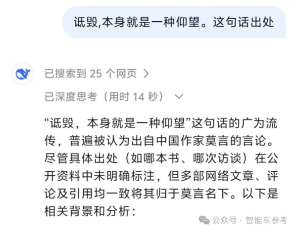 DeepSeek一番后,也没有查到所谓「莫言名言」的相关出处。或许是来自首富和知名作家的私人对话吧(doge)。