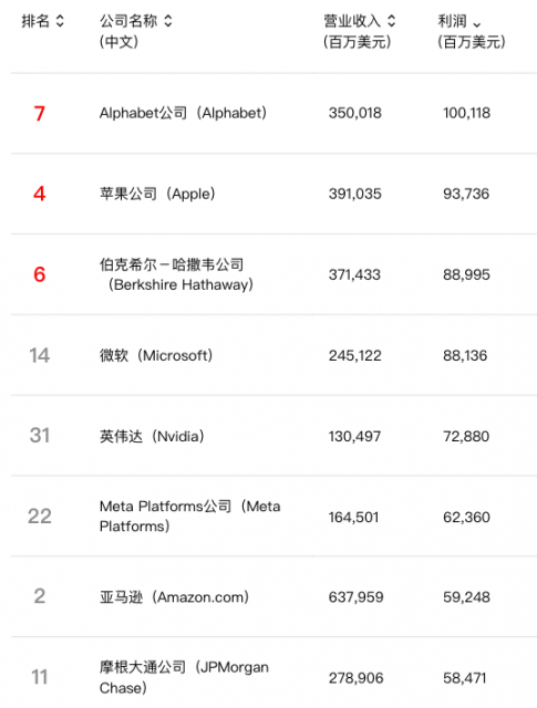 Alphabet公司去年盈利1001.18亿美元,较上一年大幅增长约35.7%,超越苹果公司位居利润榜榜首。该公司也是这份榜单历史上首家利润超过千亿美元(未调整通胀因素)的公司,结束了苹果连续四年“最赚钱公司”的统治地位。