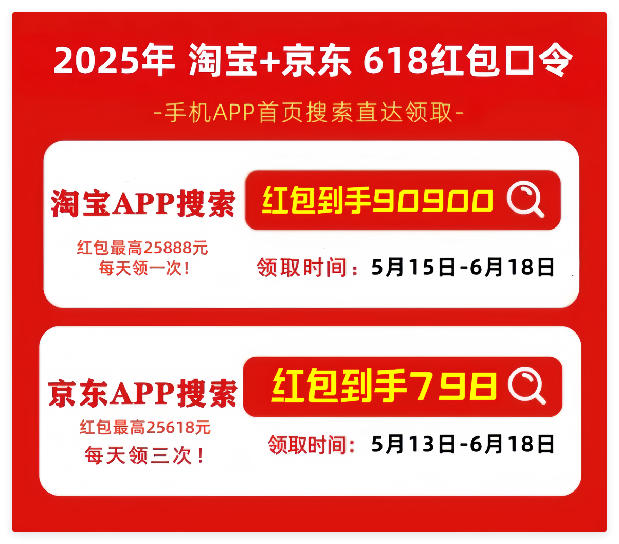 首先,划重点!2025年最新的京东618红包口令是「红包到手798」,天猫/淘宝618红包口令是「红包到手90900」记得每天去领,领的红包大小和你搜索的什么口令有关的!