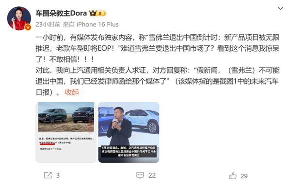 而这次报道出现,有媒体向上汽通用求证后辟谣,也说雪佛兰将退出中国是 “ 假新闻 ” 。