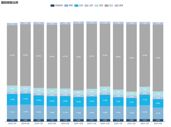 目前美系车在国内的市占率大概在 5-6% 左右,不仅远低于日系、德系,而且里面大部分也都是特斯拉,传统意义上的美系车销量已经和韩系差不多了。