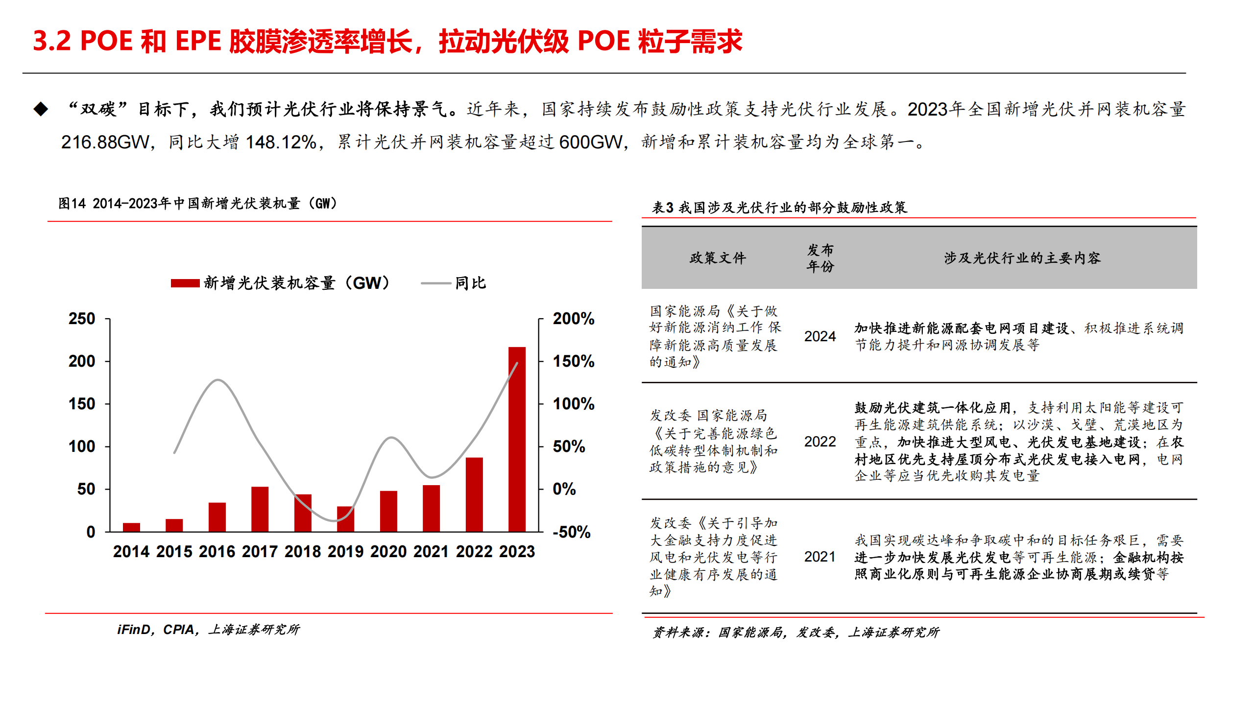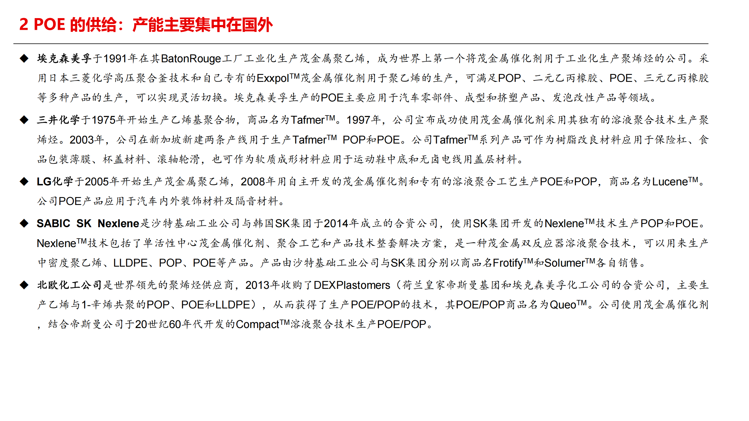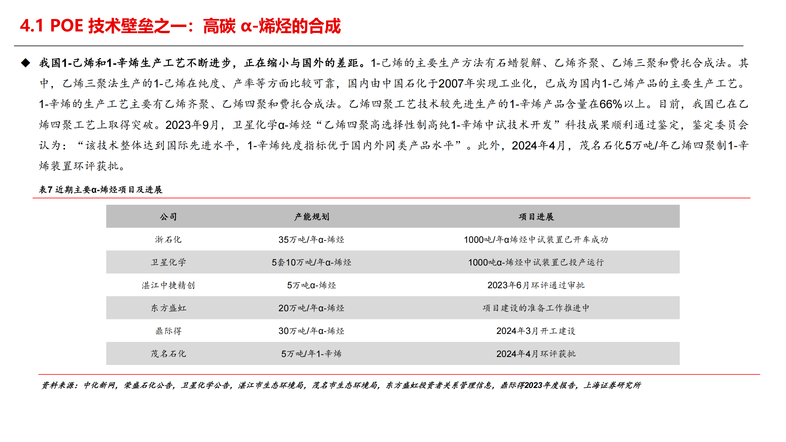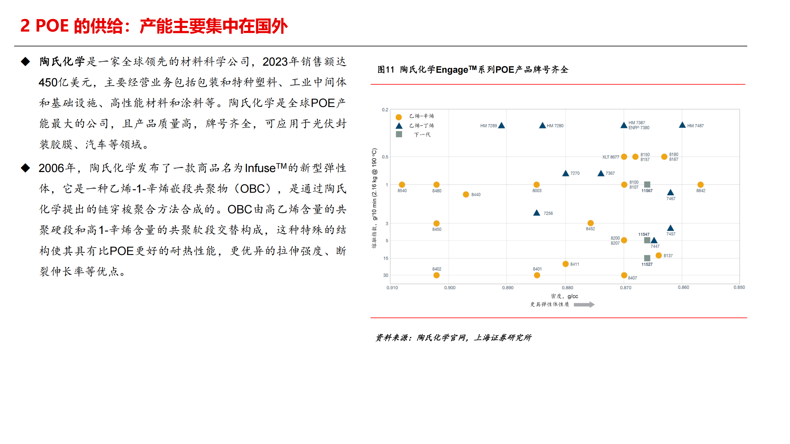 星传新材拥有全球领先的聚烯烃弹性体合成技术,致力于新型聚烯烃弹性体的研发和产业化,应用覆盖传统的合成橡胶和聚烯烃热塑性弹性体。2024年11月,公司全球首套年产3万吨超支化聚烯烃弹性体(H-POE)工业化装置在浙江龙游开工建设;2024年12月,公司中标陕西榆能能化新材料有限公司环氧树脂一体化项目(一期)10万吨/年聚烯烃弹性体装置工艺包采购项目并于次月正式签约。