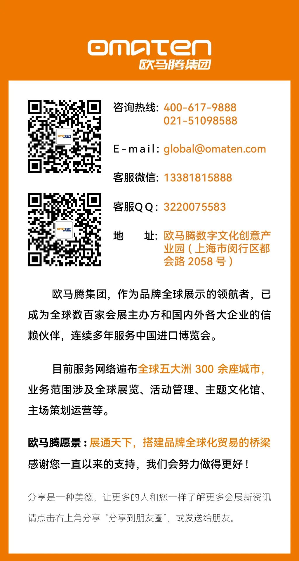 作为文化科技产业的领军企业,欧马腾会展在行业内成绩斐然。公司连续多届担任进博会服务商,同时也是全球数百家会展主办的指定搭建商,多年来一直为国内外五百强企业提供全球会展策划、运营、推广一站式服务。其服务网络覆盖全球五大洲300余座城市,与亚洲、欧洲、北美等主办场馆建立了长期战略合作关系。