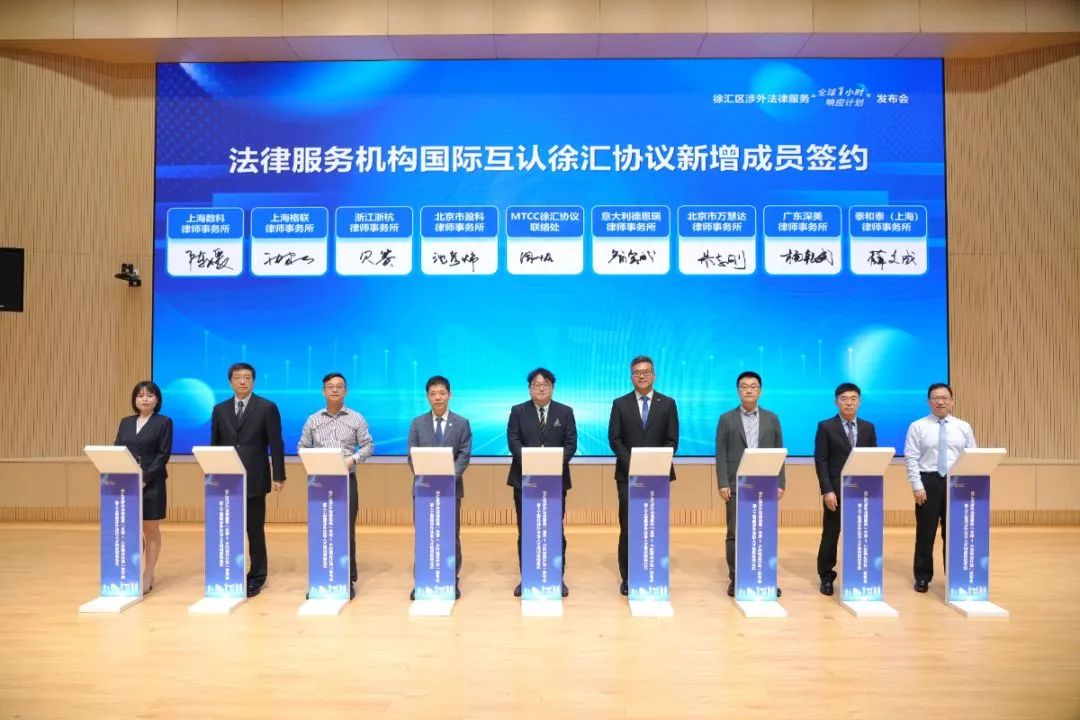 据了解,去年徐汇区推出了全市首个法律服务机构国际互认协作协议“MTCC徐汇协议”,开启了构建国际化法律服务网络的序章“MTCC徐汇协议”。经过一年发展,成员数量从29家扩展至近60家,国际影响力持续提升。意大利德恩瑞、北京盈科等8家新签约律所代表现场完成签约,进一步强化了徐汇区涉外法律服务网络的全球协作能力。在人才队伍建设方面,徐汇区司法局整合辖区律所资源,以党员律师为先锋,组建“党心律动·护企出海公益法律服务团”,形成“党建引领、公益先行、专业支撑”的服务新模式。目前,徐汇区已有23人入选上海市司法局首届“鼎新法治人才库”,8人获评“深耕者”称号,人工智能涉外法治系列培训更吸引120余名学员参与并顺利结业。