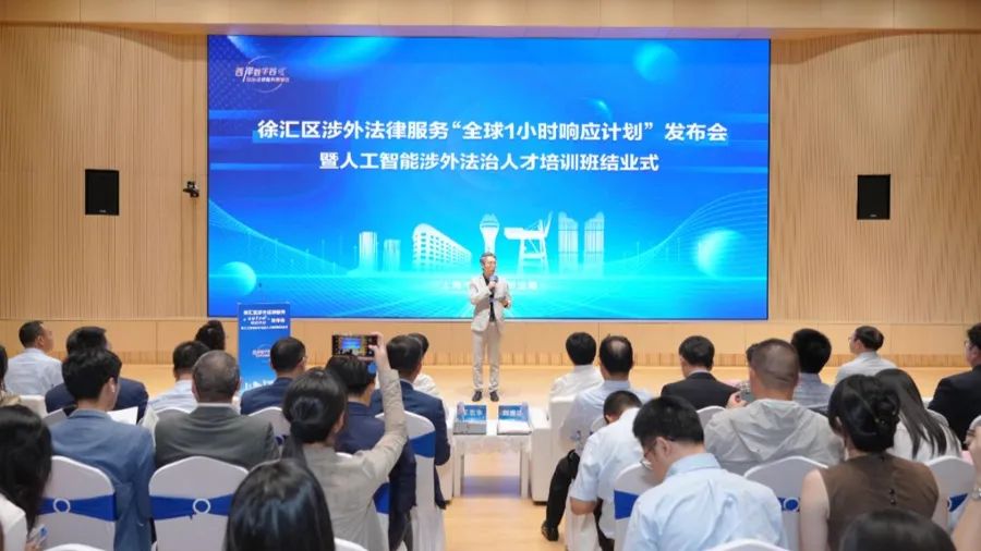 涉外法律服务“全球1小时响应计划”发布会暨人工智能涉外法治人才培训班结业式,日前在“模速空间”举行,标志着徐汇区在涉外法治建设领域迈入深化发展新阶段。