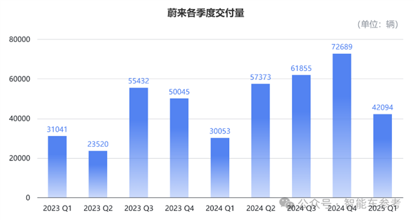 这当中包含乐道品牌交付的14781辆,去年一季度乐道还没上市,所以单比较蔚来品牌一季度交付的27313辆,同比实际减少9.1%。