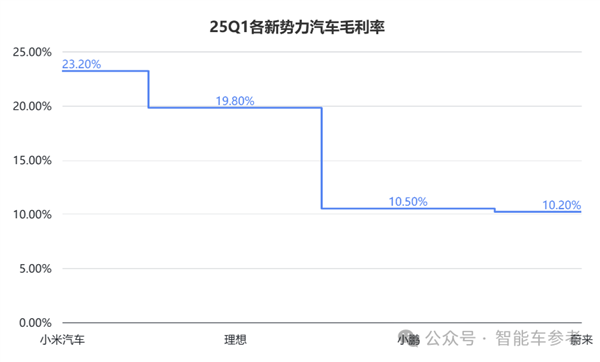 原因算算单车均价就明白了,理想这一季度均价为26.57万元,小米和蔚来也在23万元左右,小鹏则是15.3万元。