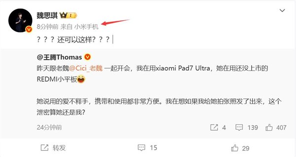 快科技6月5日消息,小米手机市场部总经理魏思琪用小米新机发了一条微博,不出意外,这款新机就是即将登场的小米MIX Flip 2,这是小米今年第一款折叠屏。