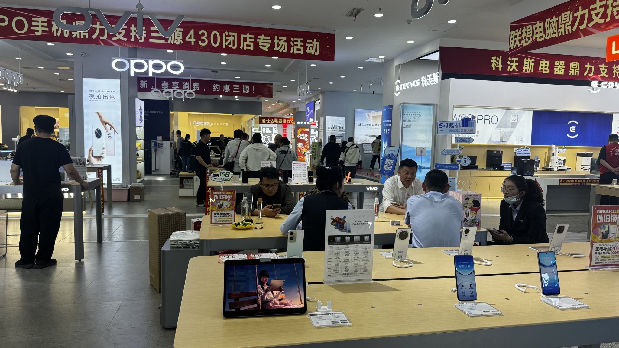 以旧换新政策扩围后,泰安市三源家电卖场手机销售额大增