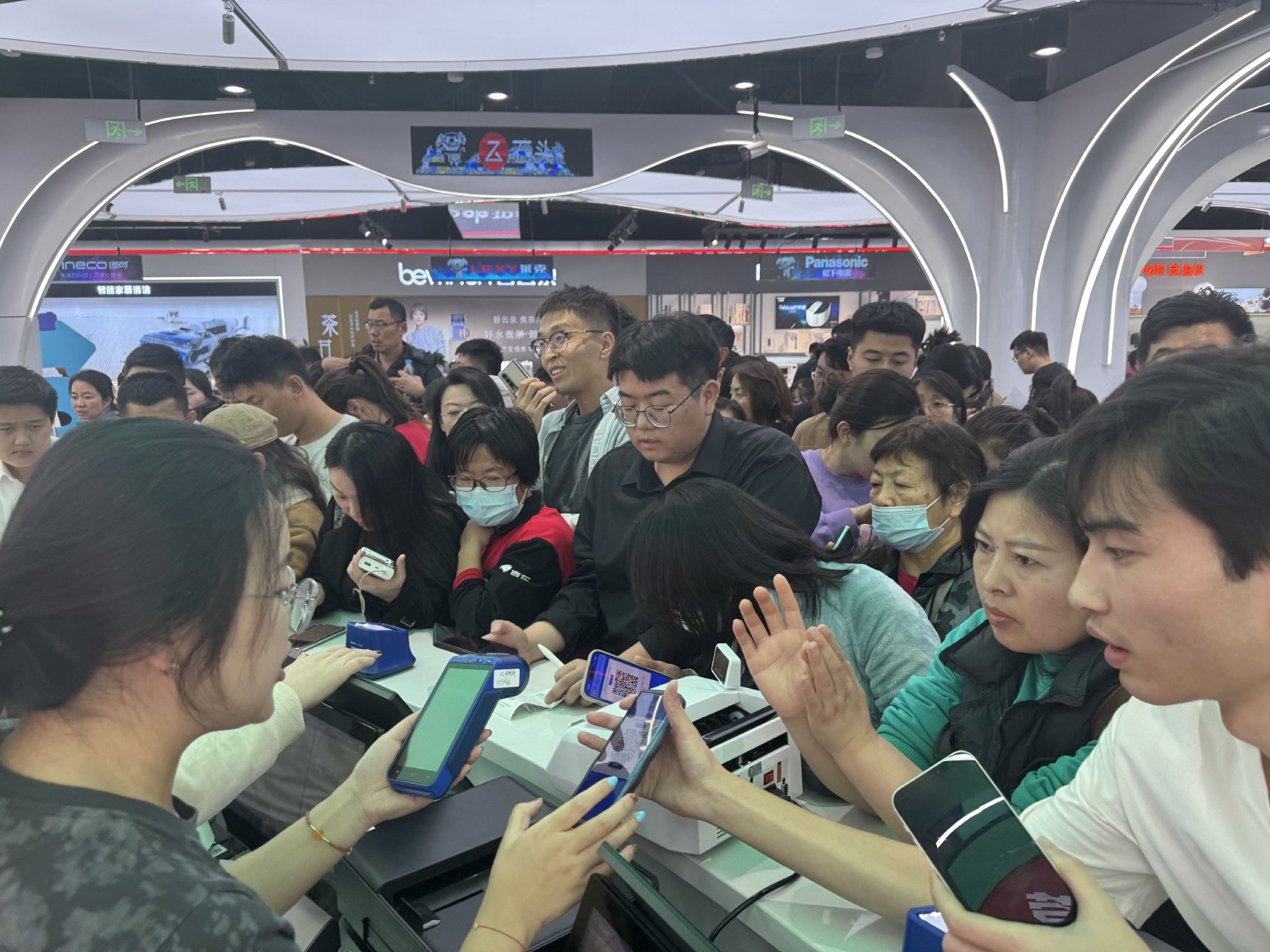 受以旧换新政策带动,大量消费者前往济南京东电器城市旗舰店购买家电