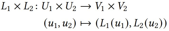 给定两个线性布局𝐿₁ : 𝑈₁ → 𝑉₁, 𝐿₂ : 𝑈₂ → 𝑉₂,且 𝑢1₁∈ 𝑈₁, 𝑢₂ ∈ 𝑈₂,则定义它们的积为: