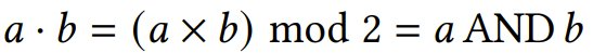 这类似于标准矩阵乘法,不同之处在于所有算术运算都在 𝔽₂ 中执行。