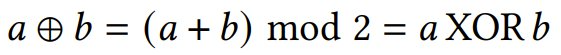 我们可将两个元素 {0, 1} 的域表示为 𝔽₂。在 𝔽₂ 中,所有算术运算均以 2 为模执行。