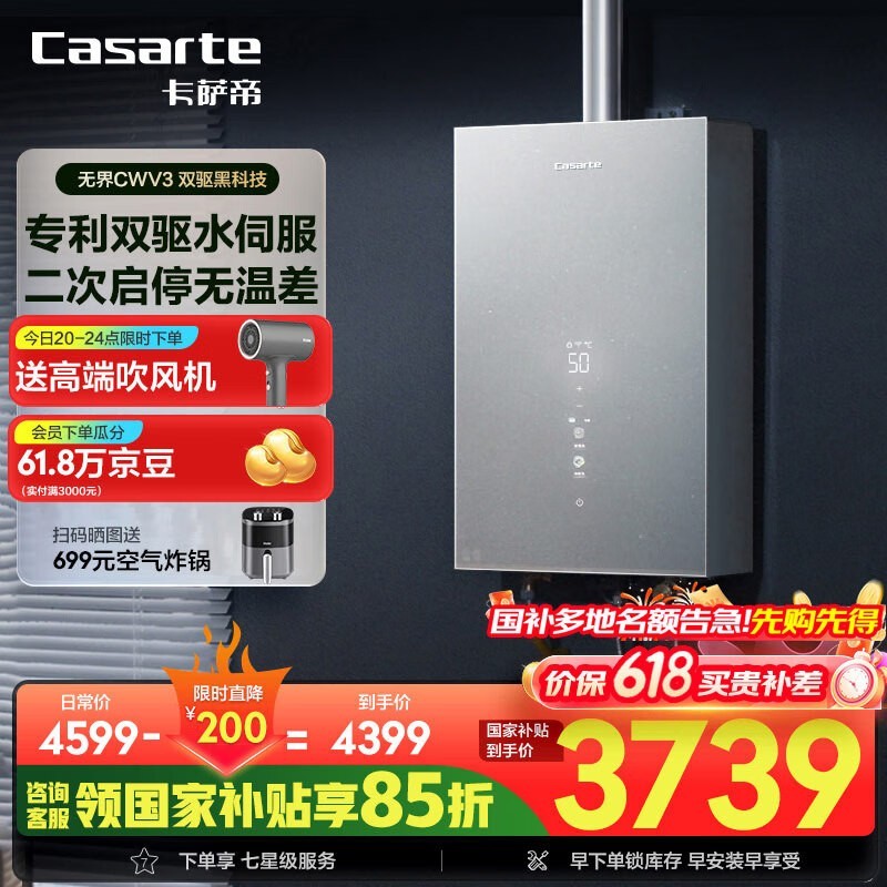 卡萨帝JSQ31 - 16CWV3FVXGU1燃气热水器超值优惠