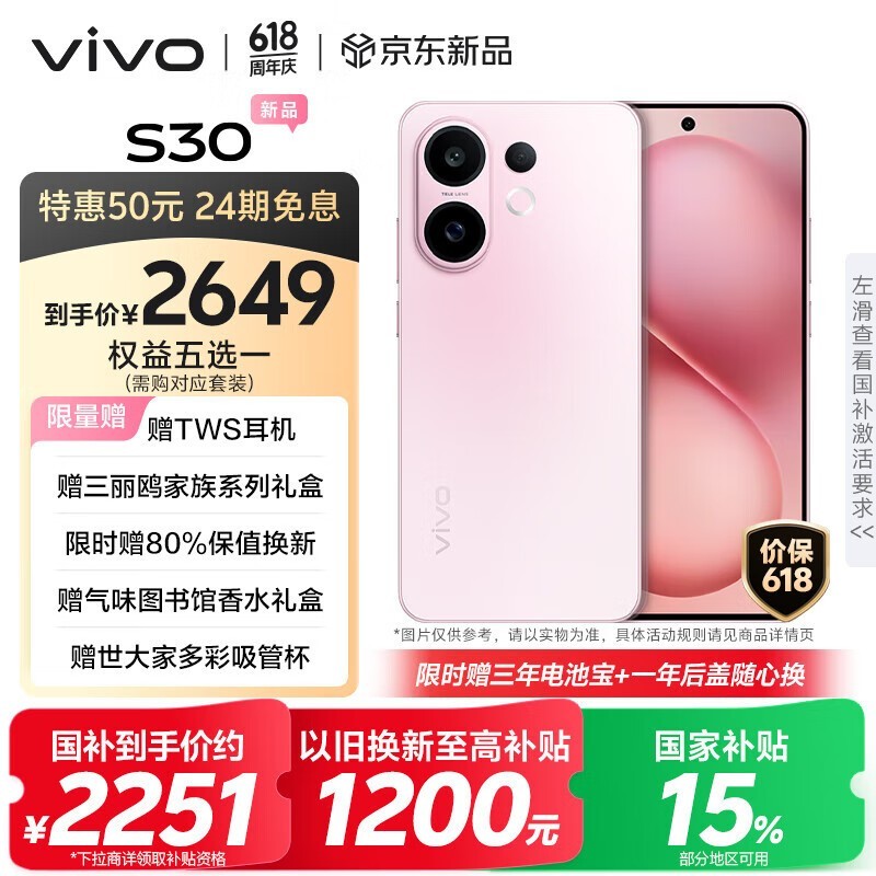 vivo S30 5G手机桃桃粉限时特惠2251元