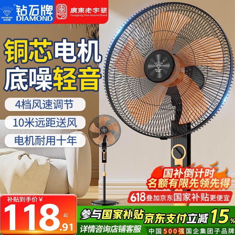 钻石牌电风扇落地扇大风力静音家用立式风扇