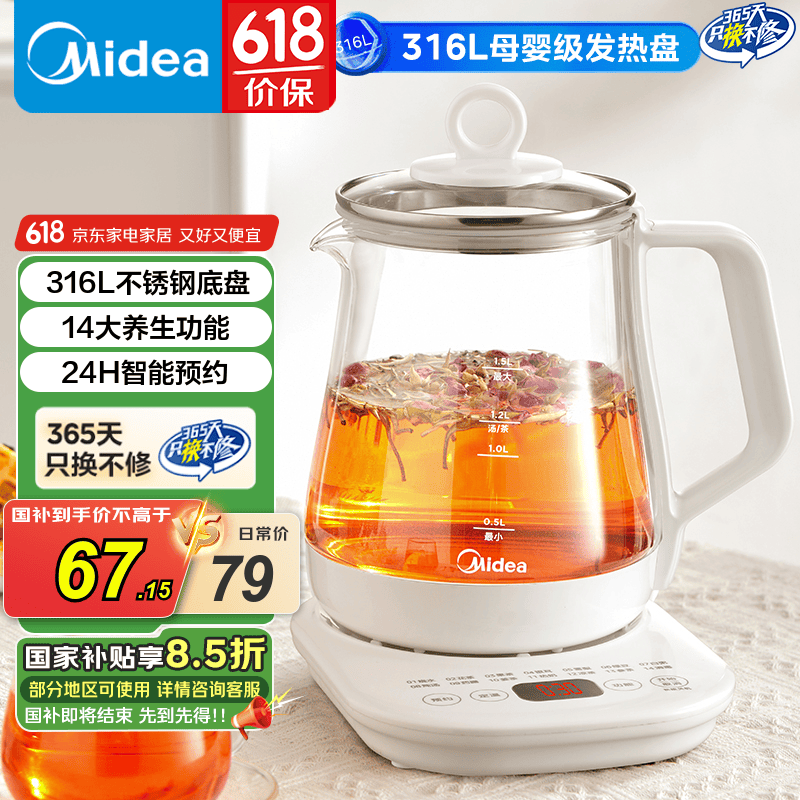 美的YSP1508养生壶1.5L,低至20.4元超值购