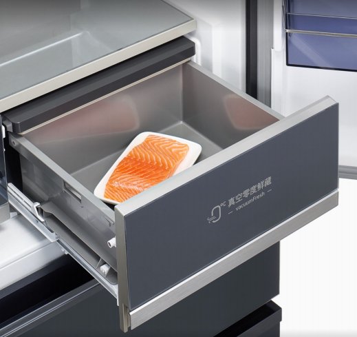 冷藏室左右两个抽屉都提供了接近零度,但不低于零度的温度环境。左边的超氧零度抽屉能够精准控温的同时提供高湿环境,保持果蔬鲜润。可以为食材储存延长三倍保鲜时长;右边的真空零度鲜藏抽屉达到航天级真空零度鲜藏,抽屉内是真空环境,更加有效的抑制细菌滋生。相比于普通保鲜,更能维持食材的水份跟营养,尤其适合储存肉类,可以达到9倍保鲜力。