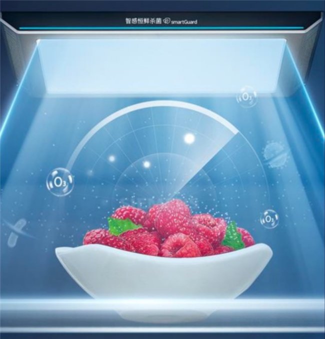 而且它的智能eNose超氧锁鲜功能十分强大,能够24小时实时监测冰箱内的状态,一旦监测到有异味,就会立刻释放超氧分子,可以有效去除99.99%的细菌、99.9%的病毒、除味率也大于90%,同时还能通过手机app接受异味警报,提醒及时处理散发异味的变质食材。