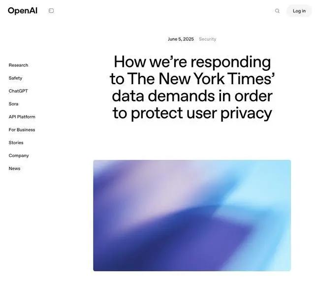 OpenAI 表示,“信任和隐私是我们产品的核心”,《纽约时报》及其他原告的诉讼请求从根本上违背了其对用户做出的隐私承诺,是越权行为。