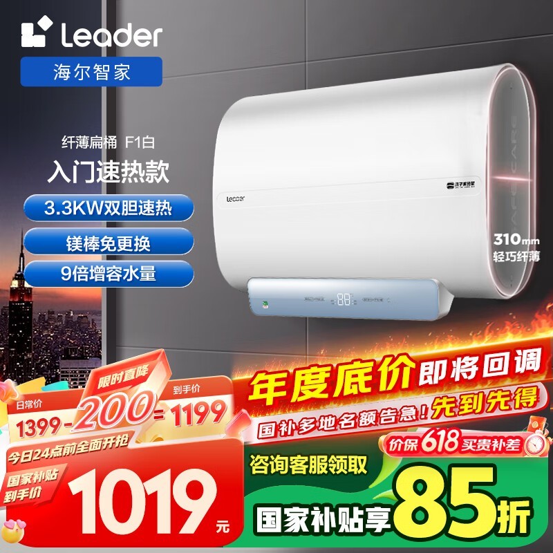 海尔智家统帅60升电热水器京东955元