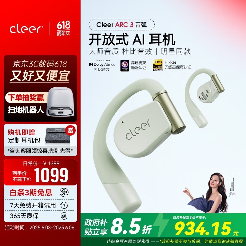可丽尔Cleer郎朗耳机京东1元9折促销