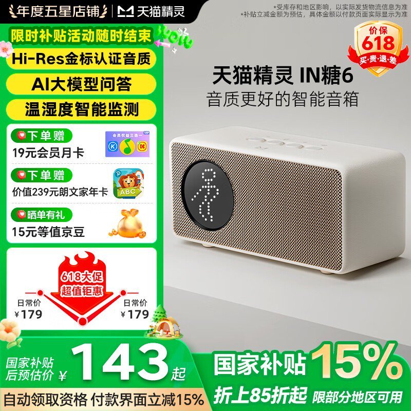 天猫精灵IN糖6奶糖色音箱到手价128元