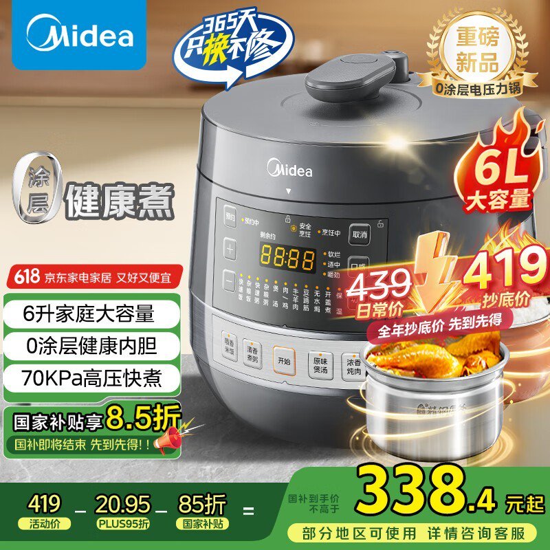 美的6L双胆电压力锅,原价469元现低至248元