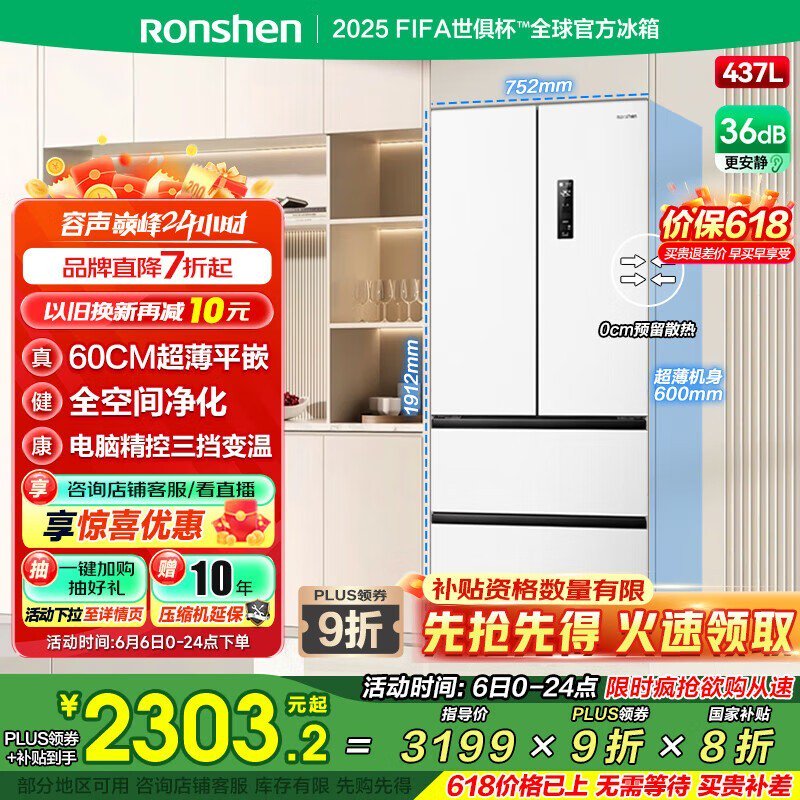 容声437升冰箱 京东优惠后2277元