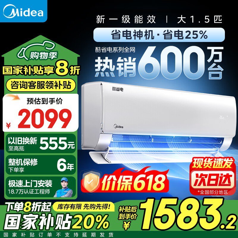 美的酷省电pro空调1匹 优惠后1320元