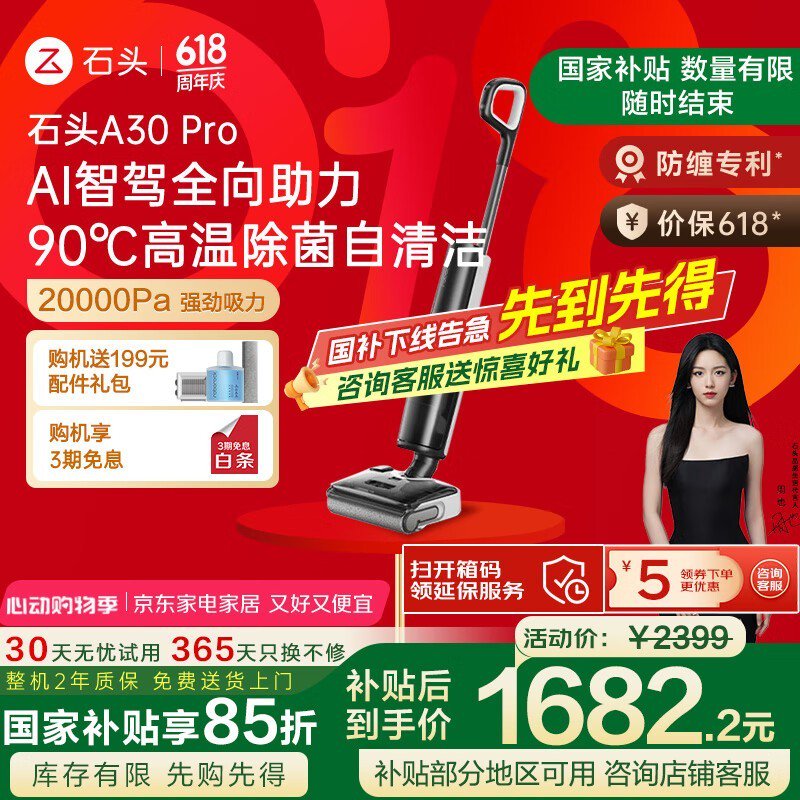 石头A30 Pro无线洗地机黑灰旗舰新品限时特惠1682元