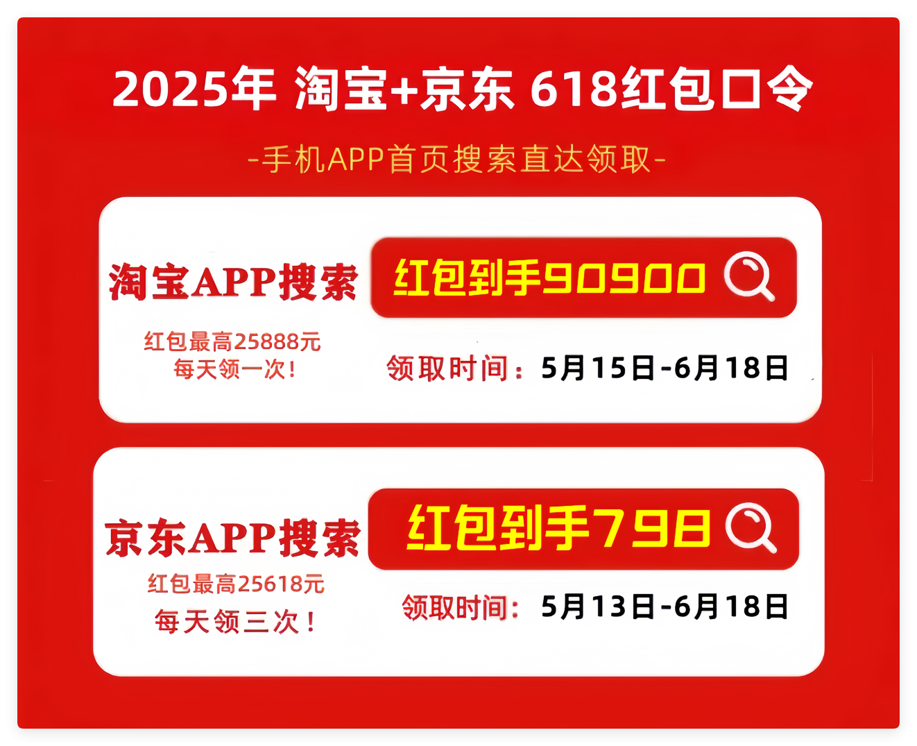 首先,划重点!2025年最新的京东618红包口令是「红包到手798」,天猫/淘宝618红包口令是「红包到手90900」记得每天去领,领的红包大小和你搜索的什么口令有关的!