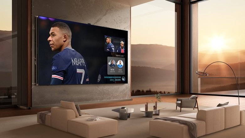 配合 116 英寸的巨幕,就像把球场直接搬到了家里,让球迷们不错过任何一个精彩瞬间。再加上330Hz 系统级高刷,即使是球员们高速奔跑、激烈对抗的场景,也能呈现零拖影的震撼视觉,让观赛体验无比流畅。