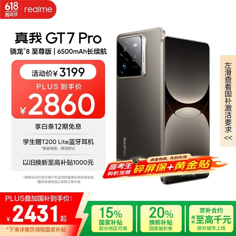 realme GT7 Pro 5G手机京东优惠价2415元